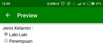 <input name="jeniskelamin" type="radio" value="P" > Perempuan
